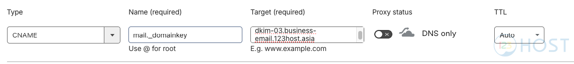 - Trỏ bản ghi CNAME mail._domainkey về dkim-03.business-email.123host.asia